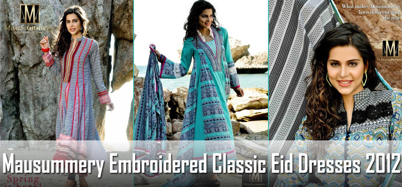 Mausummery now introduced Latest Eid Collection 2012 For womens. Mausummery was established in 1997 founded by Huma. in this exclusive Eid Collection she presents stylish dresses with great color combination. for this Eid festival huma used mostly light colors in this collection. you can also wear these outfits in parties and others.these stunning and beautiful lawn dresses are also available at leading store/garments of Mausummery. the collection is consists long shirt, embroidered classic dresses, frock, A-Line shirt with churridar pajama and trouser.